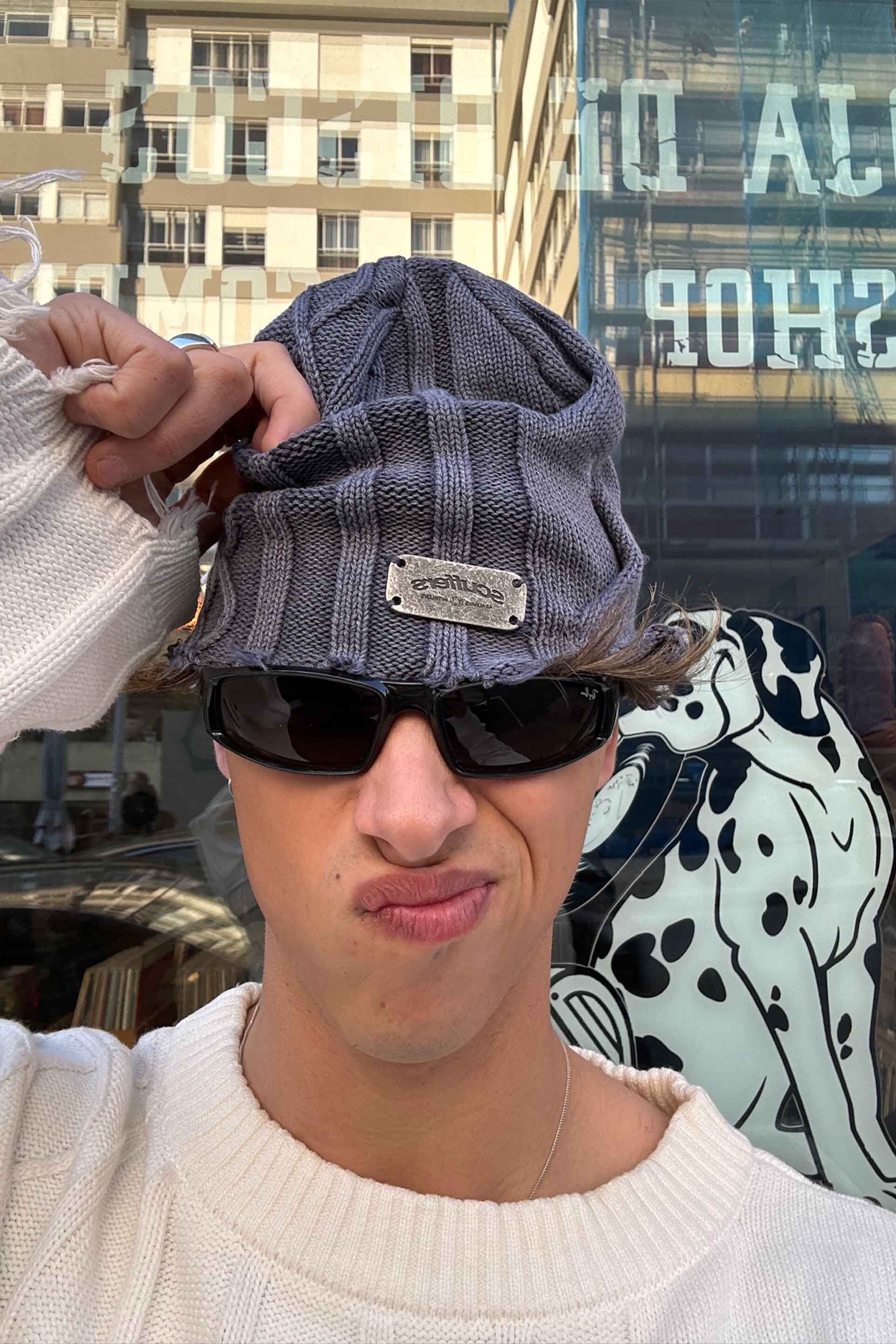 Gorro azul tipo gabardina