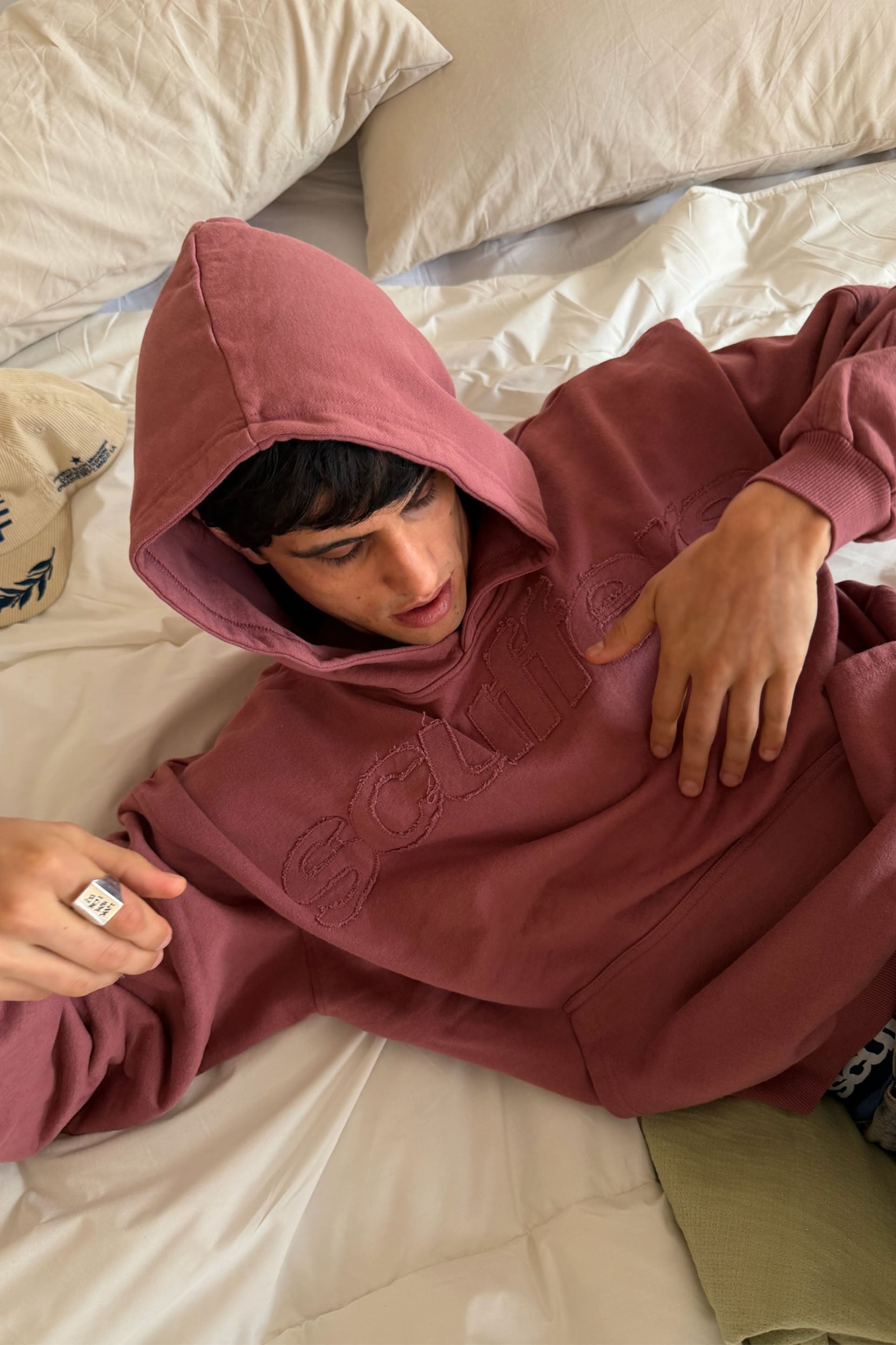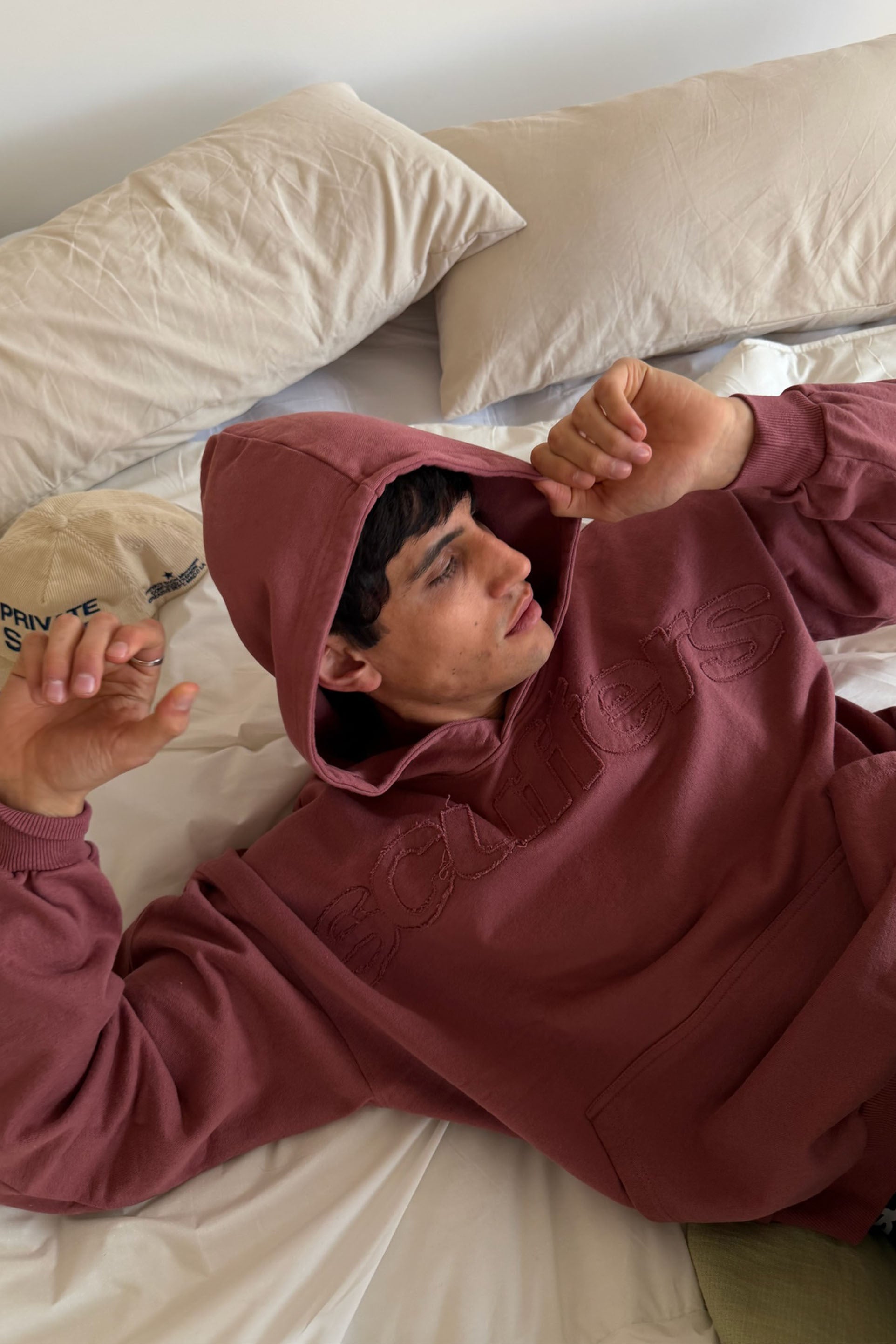 Sudadera con capucha color burdeos crudo
