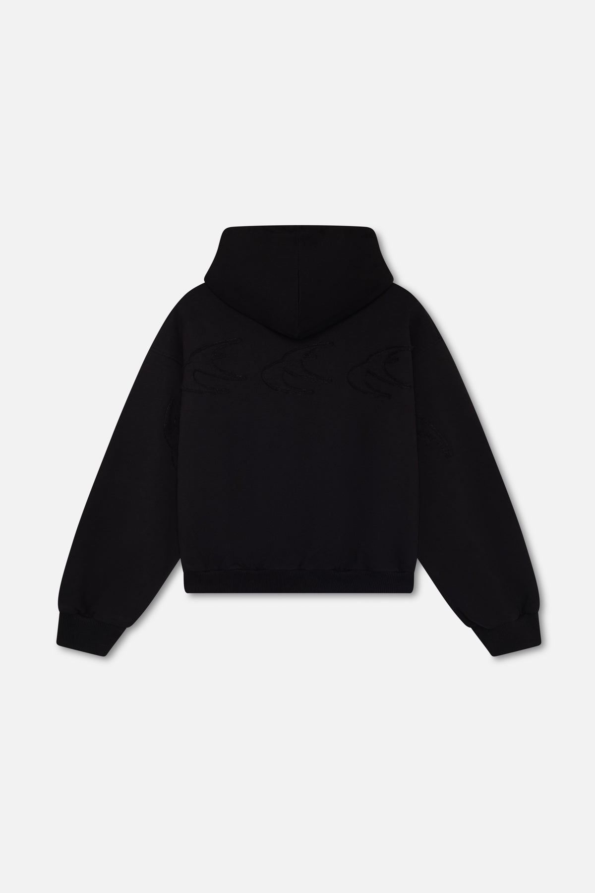 Sudadera oscura con capucha de gaviota