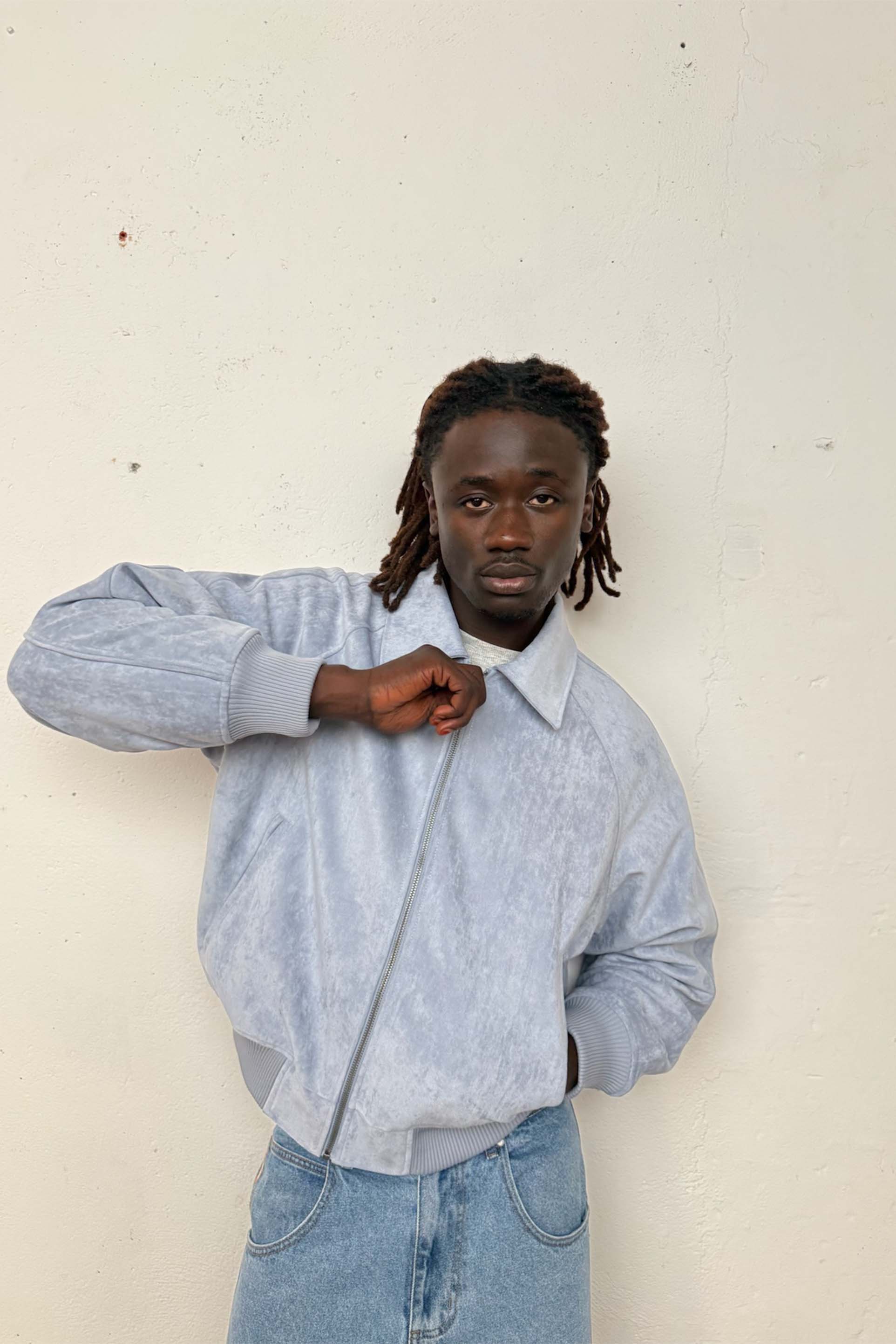 Chaqueta de ante azul crudo
