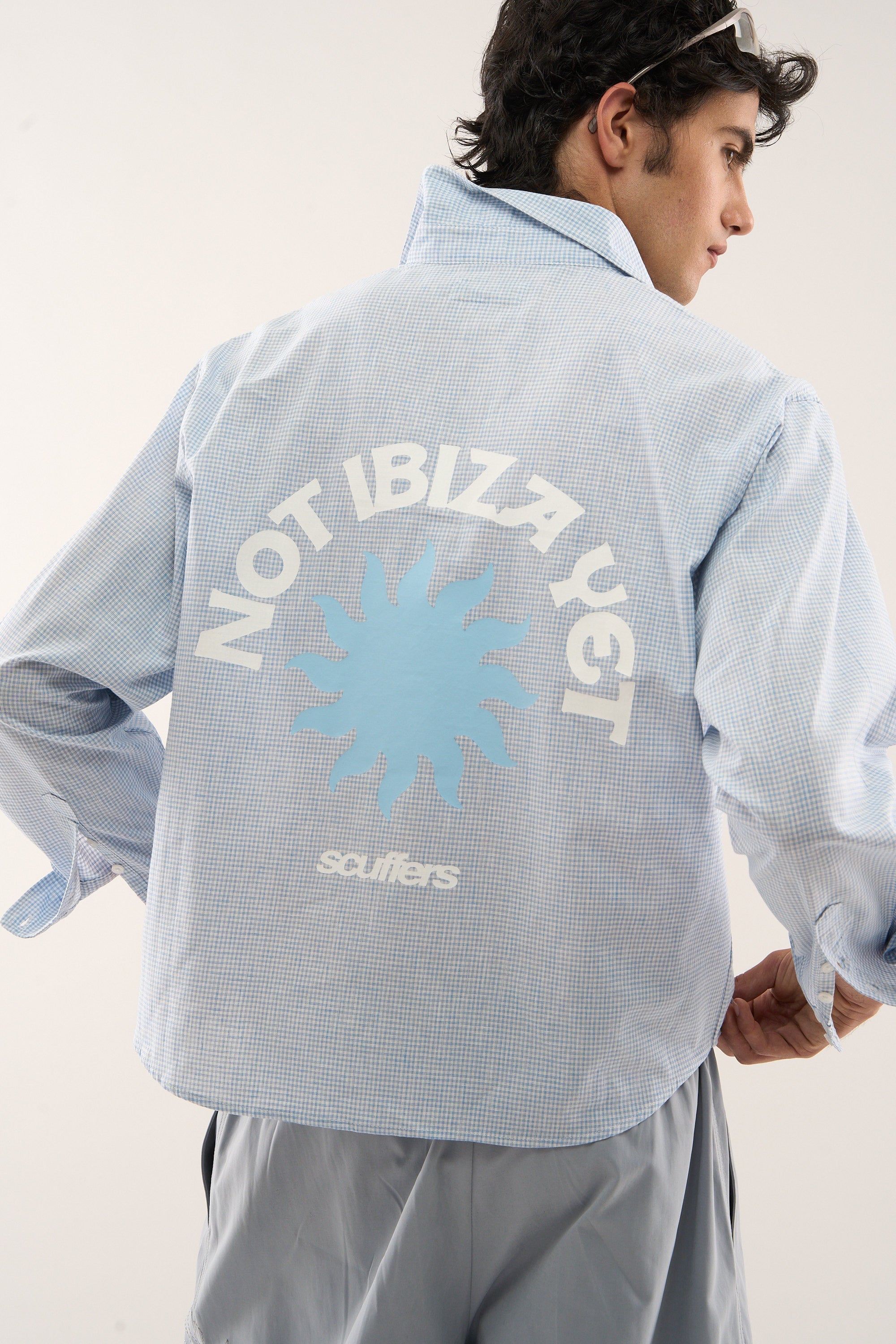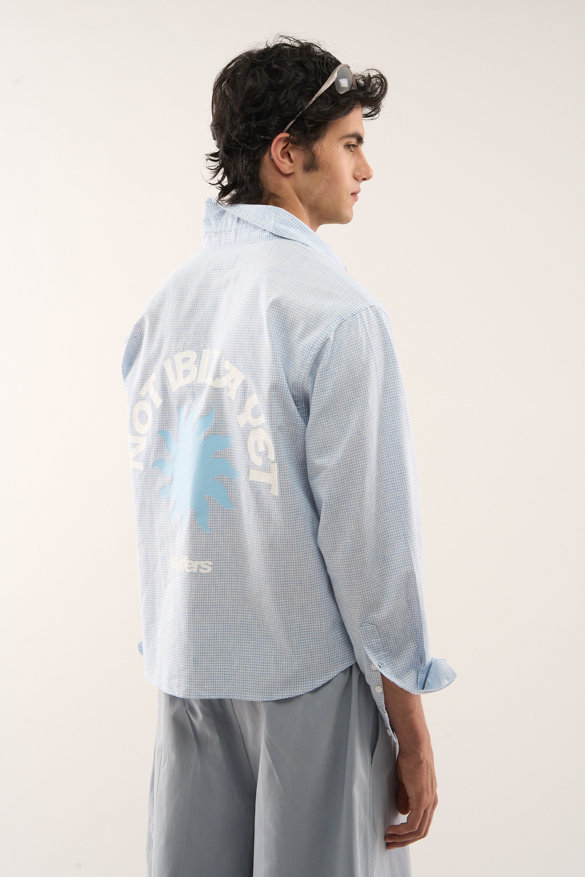 Camisa azul a cuadros gemelos