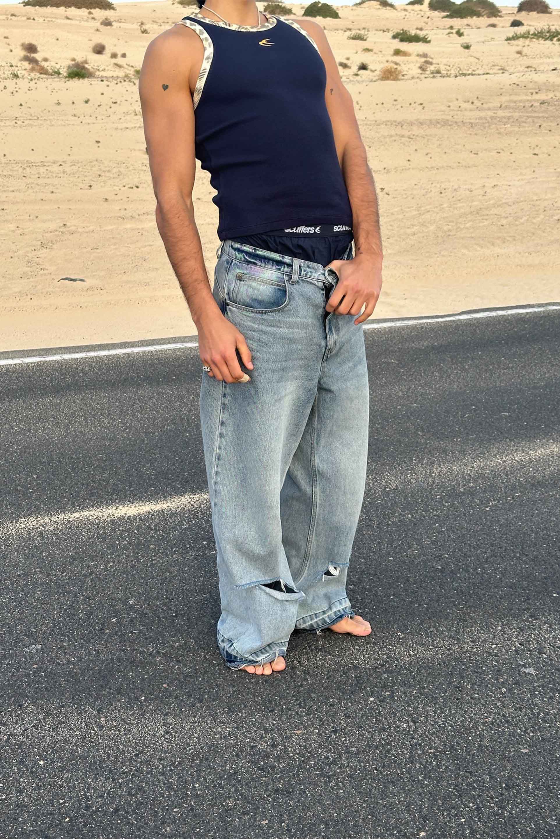 Camiseta sin mangas SCFF con estampado de gofres de animales en azul marino